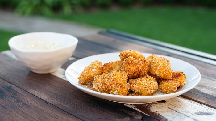 These chicken nuggets are a lot healthier than frozen chicken nuggets you can buy at the store.